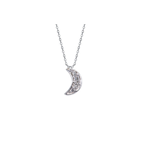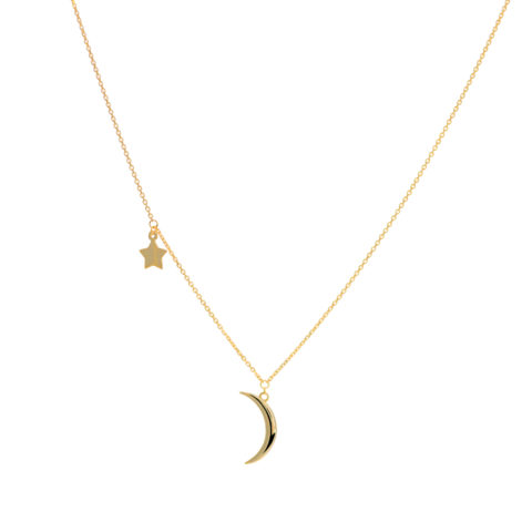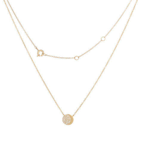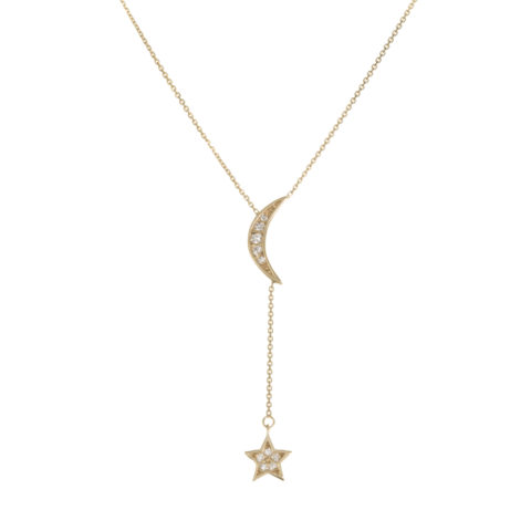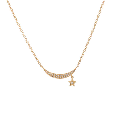 14k Gold Diamond Crescent Moon and Full Moon Necklace