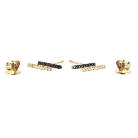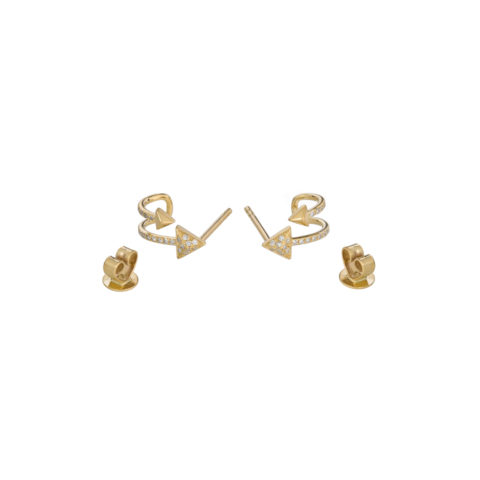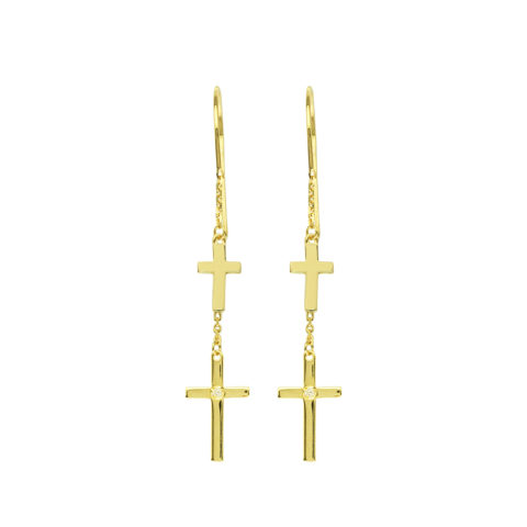 14k Yellow Gold Double Cross Dangle Earring with Diamond