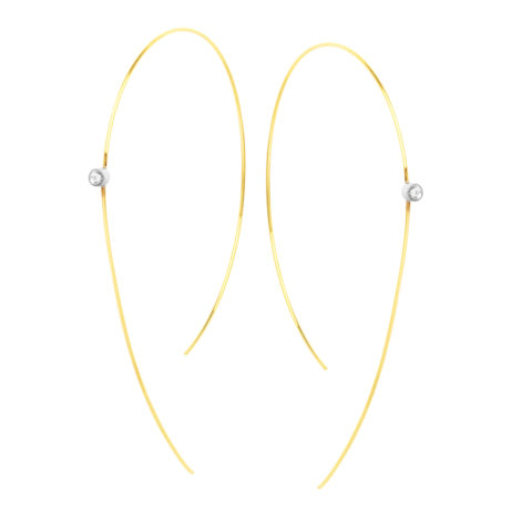14k Gold Arc Wire Earrings with Single Bezel Diamond