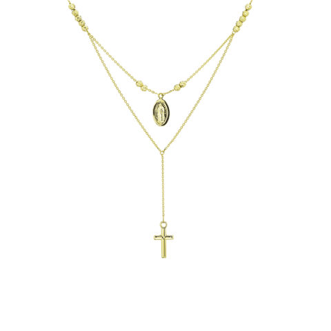14k Gold Virgin Mary and Cross Layered Necklace
