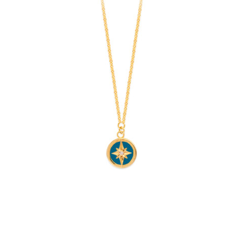 14k Yellow Gold Shooting Star Turquoise Enamel W/Single Diamond