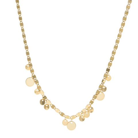 Adjustable 14k Yellow Gold Valentino Style Multiple Disk Necklace