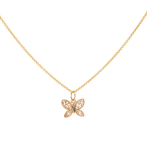 14k Yellow Gold Dainty Butterfly Charm Necklace