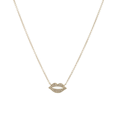 14k Gold and Diamond Lips Necklace