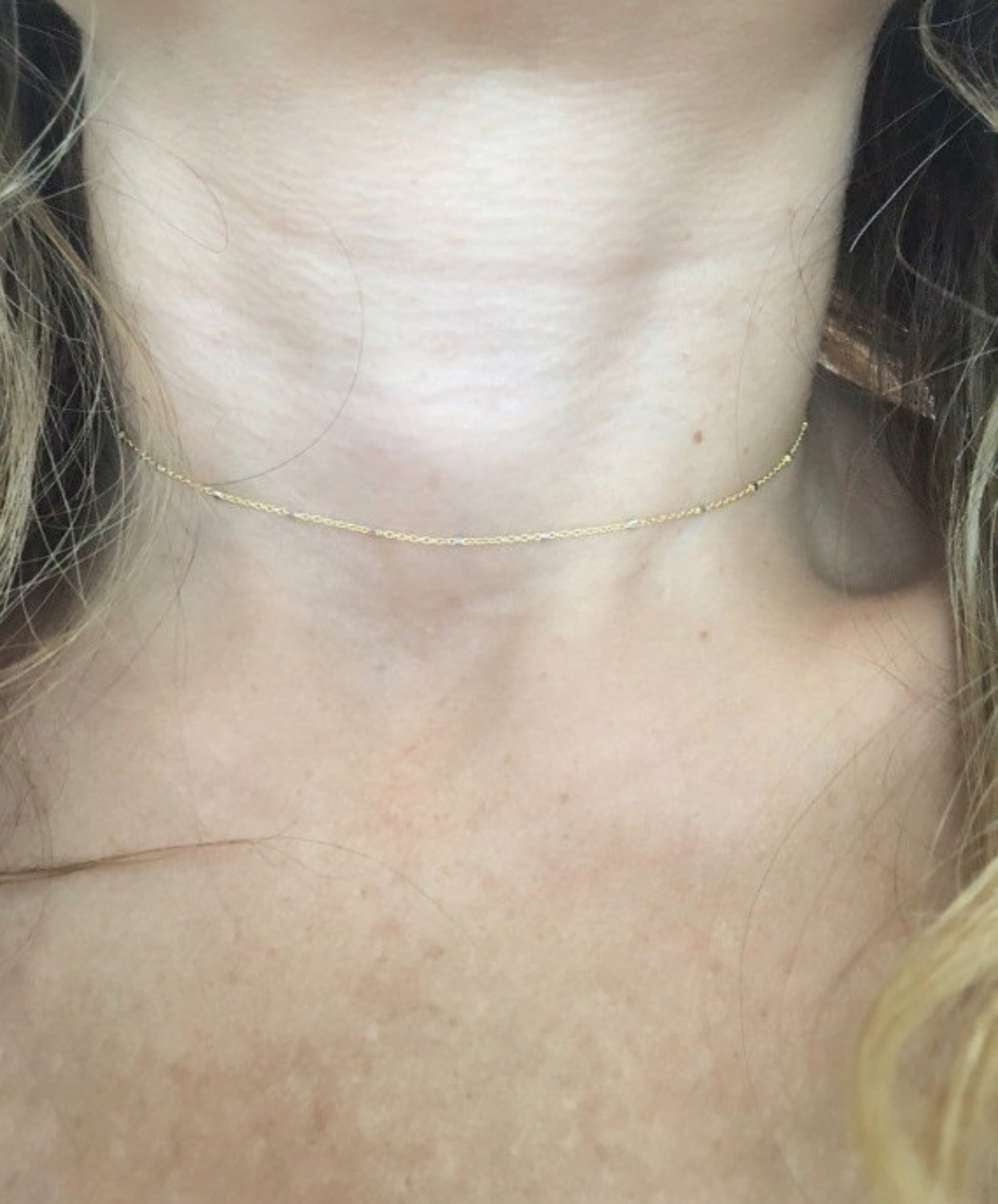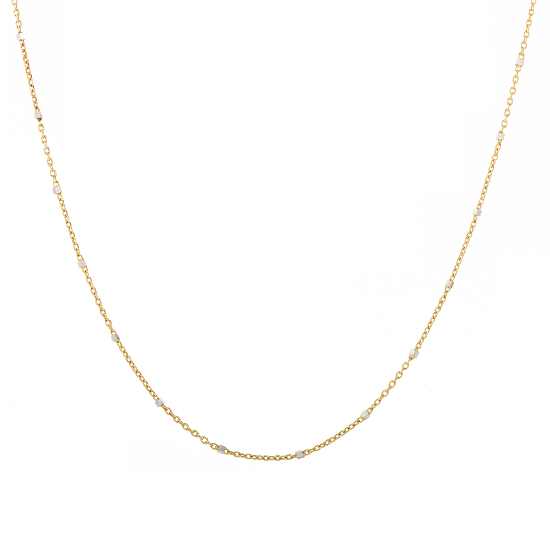 This 14k gold dainty two tone chain choker is a great addition to any collection! The 14k yellow gold rolo chain with white diamond cut balls give it just the right amount of sparkle! A simple piece that goes with any outfit and is great to layer with other necklaces or chains.