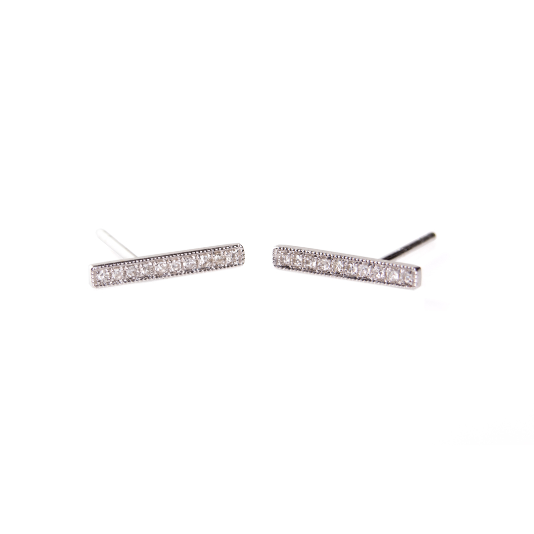 These 14k Gold diamond bar/staple earrings are fun and trendy! They are great everyday earrings that can be worn a couple different ways. Also makes a great gift for someone special or just for you!