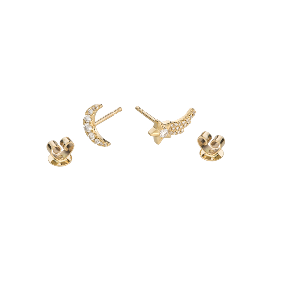 This beautiful 14k gold diamond crescent moon and shooting star earring is the perfect addition to any collection! Make a wish with this whimsical diamond crescent moon and shooting star earring! Timeless gift to remind someone or yourself that no matter what, you can always shoot for the stars!