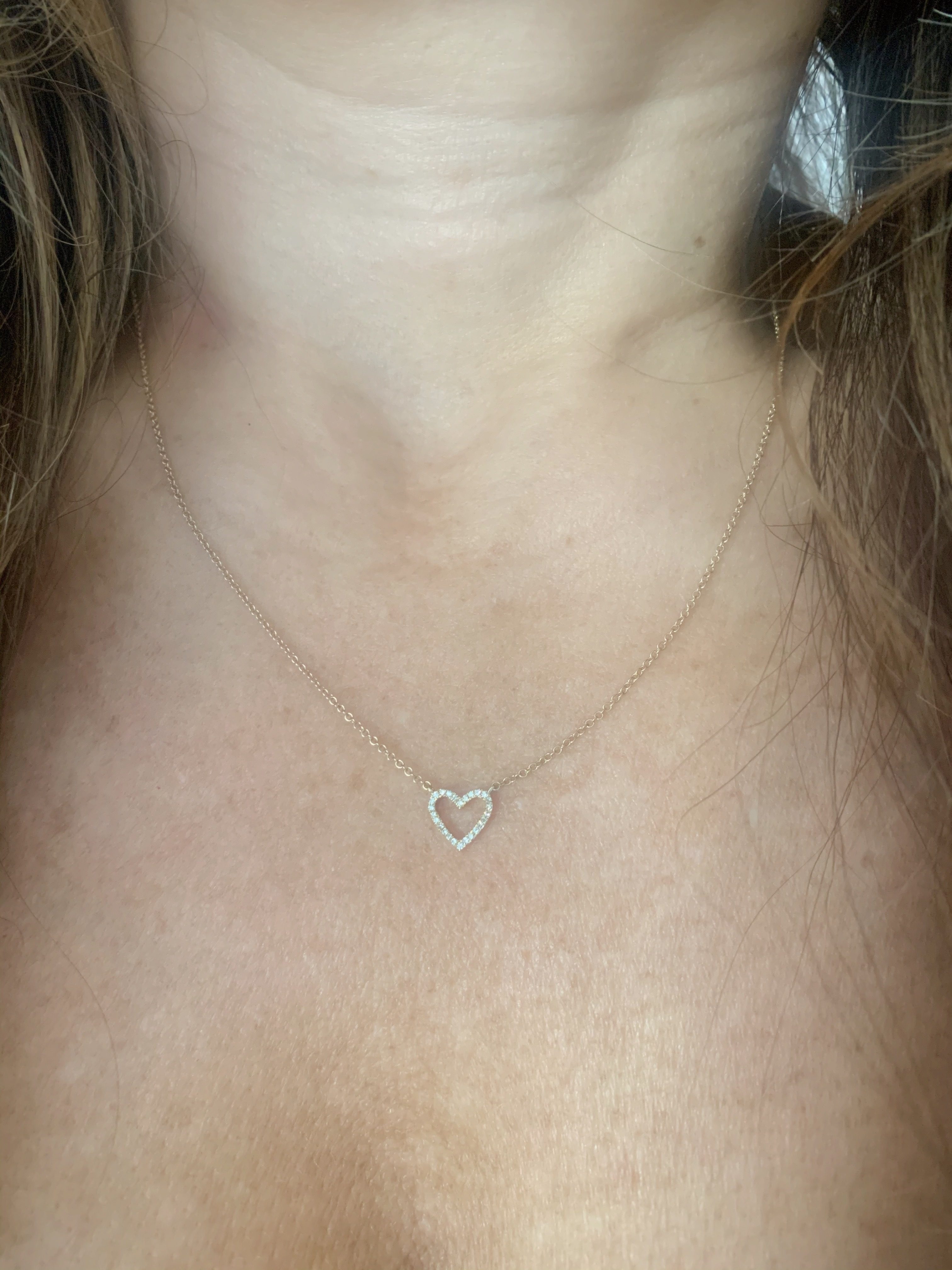 This beautiful 14k gold diamond heart necklace is the perfect pendant for everyday wear. Adjustable length from 16″, 17″ and 18″ makes it great for layering with other necklaces or can be worn just by itself. Pair with jeans and a basic tee for a chic effortless look!