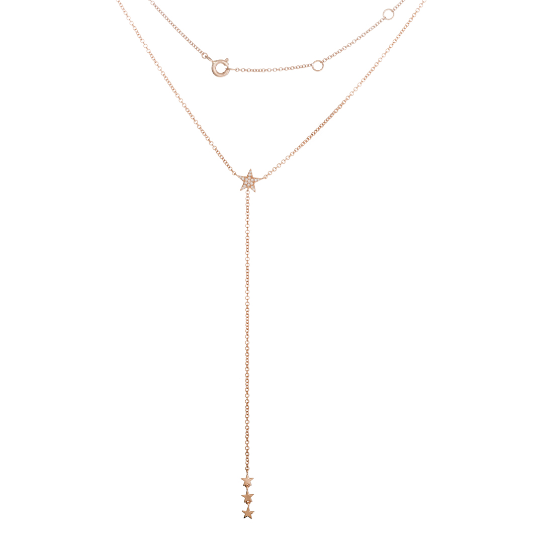 This beautiful 14k gold star lariat with 3 tiny gold stars at the end of the lariat. Perfect for jeans and tee or your little black dress.