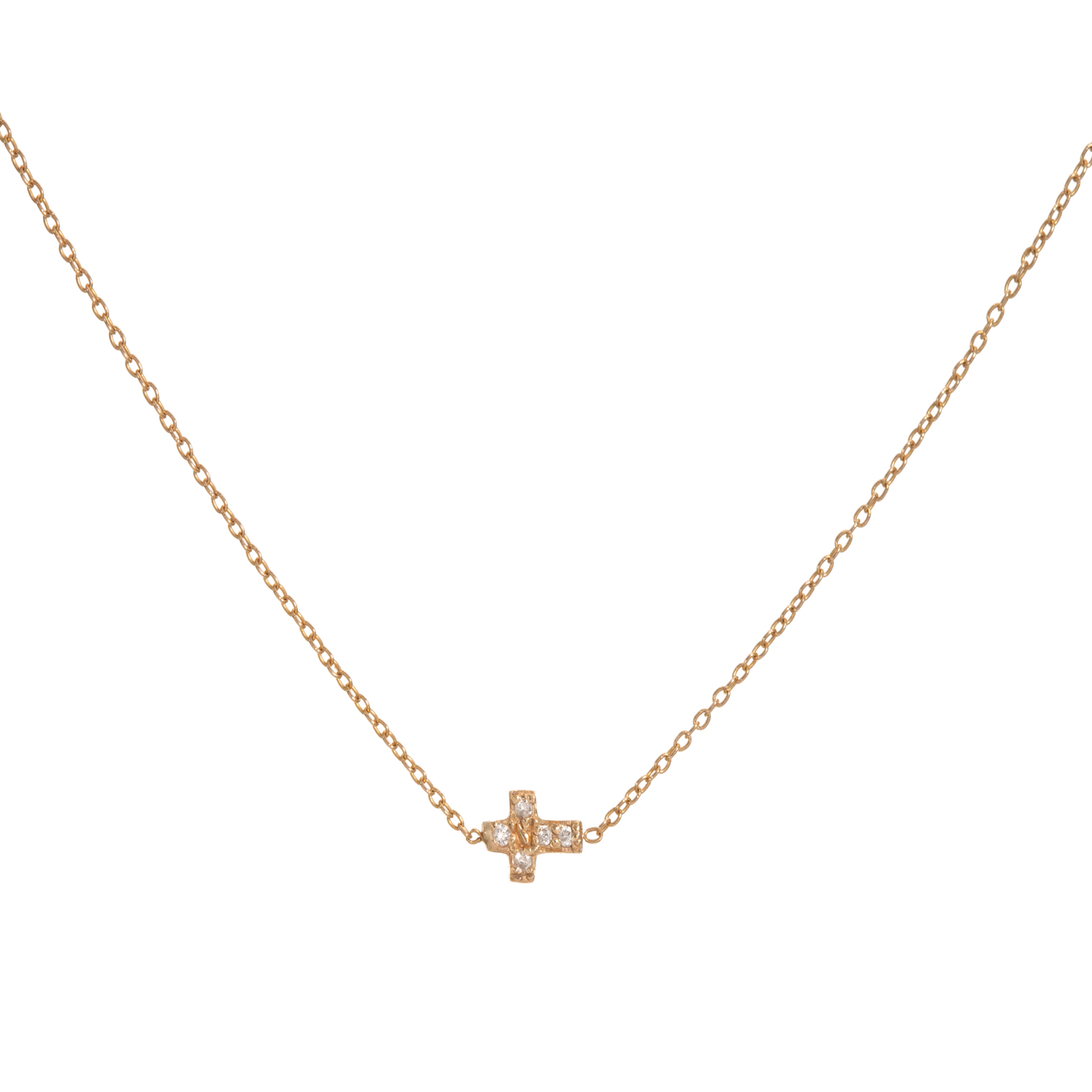 14K gold tiny sideways diamond Cross necklace is cute and dainty. A great everyday necklace that can be layered or worn by itself. A beautiful gift for any occasion or just for you!