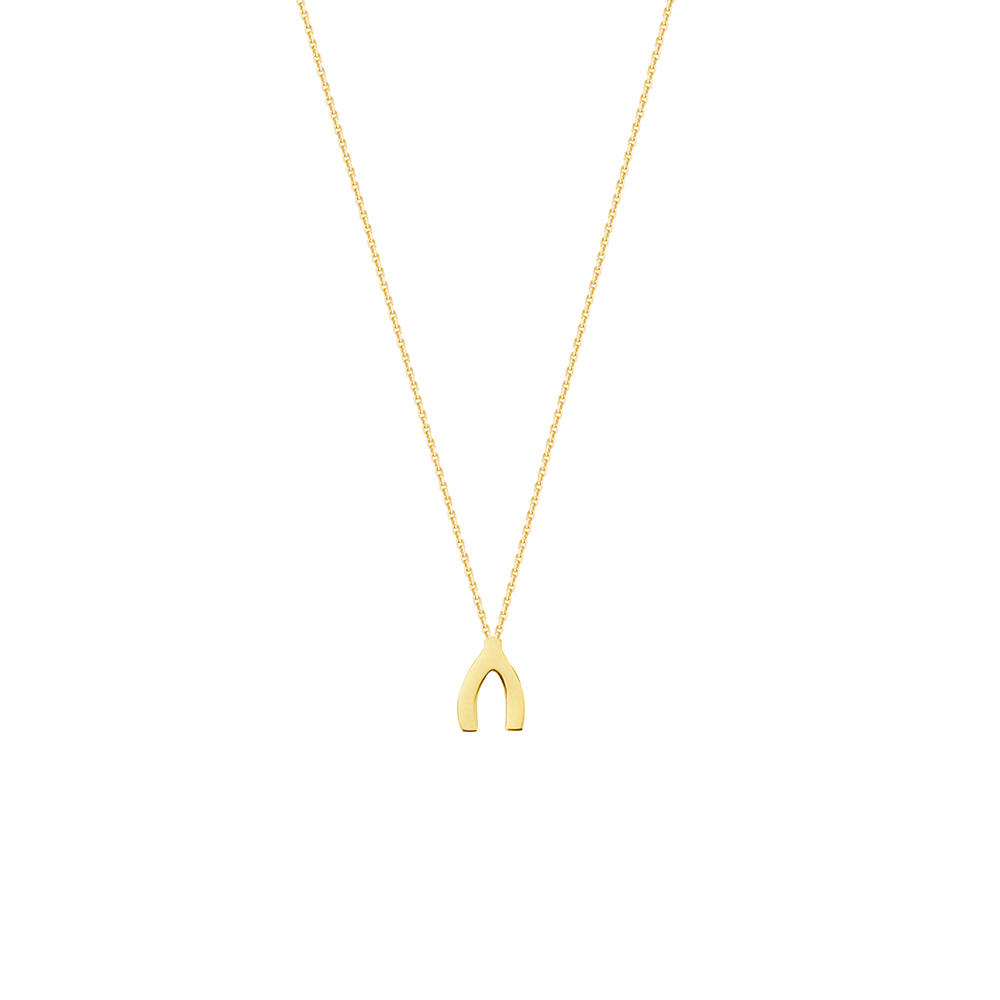 14k gold wishbone necklace.