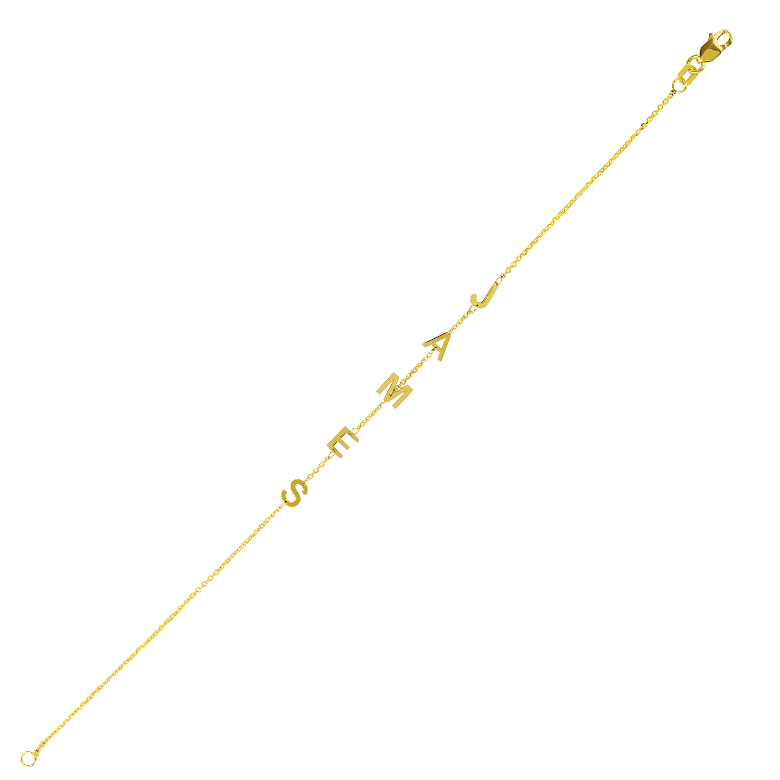 Personalized 14k yellow gold name bracelet. This beautiful and simple personalized 14k gold name bracelet is a great everyday piece that can be worn by itself or it can be layered with other bracelets. Great gift for any special occasion or just for yourself!